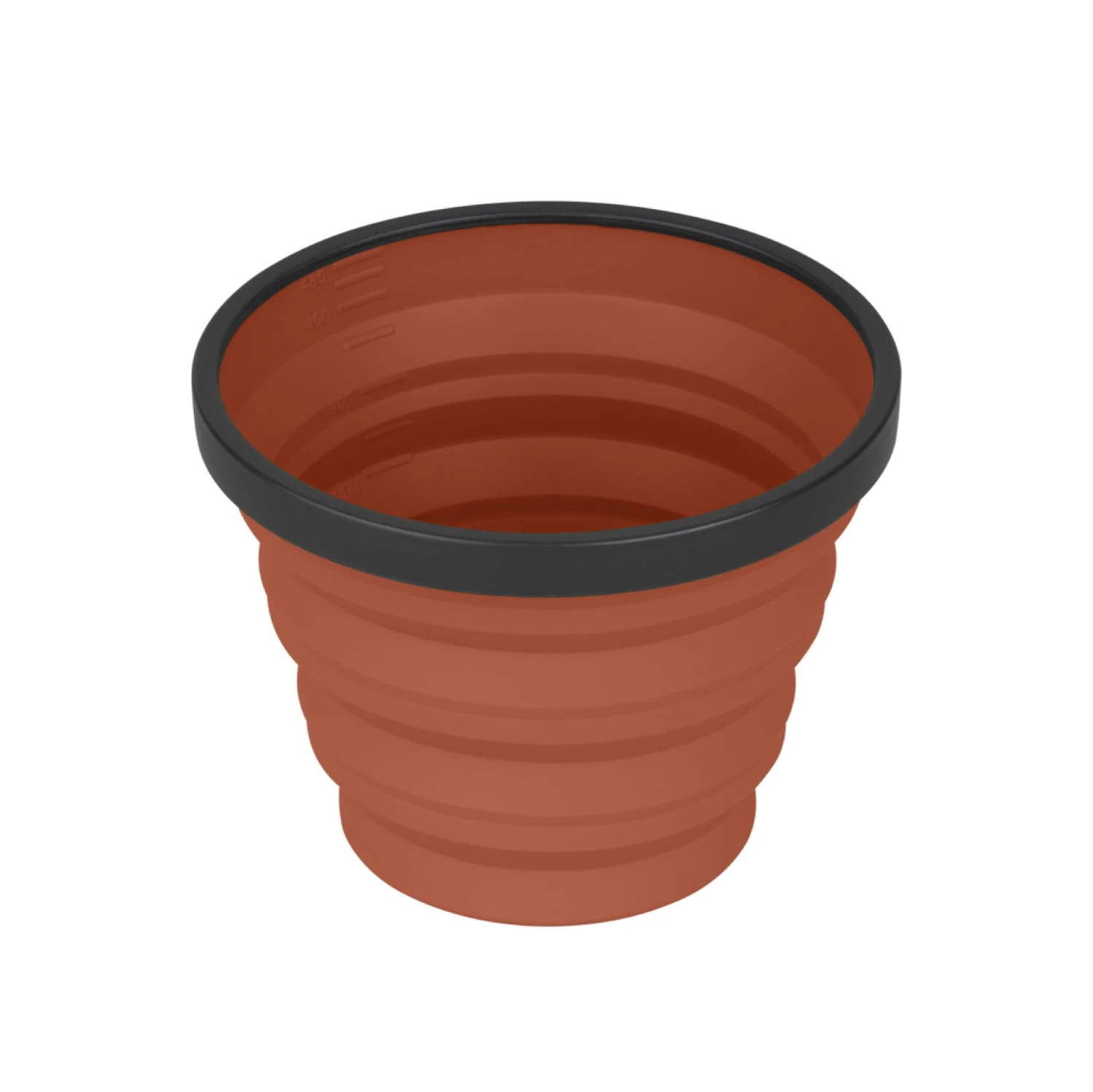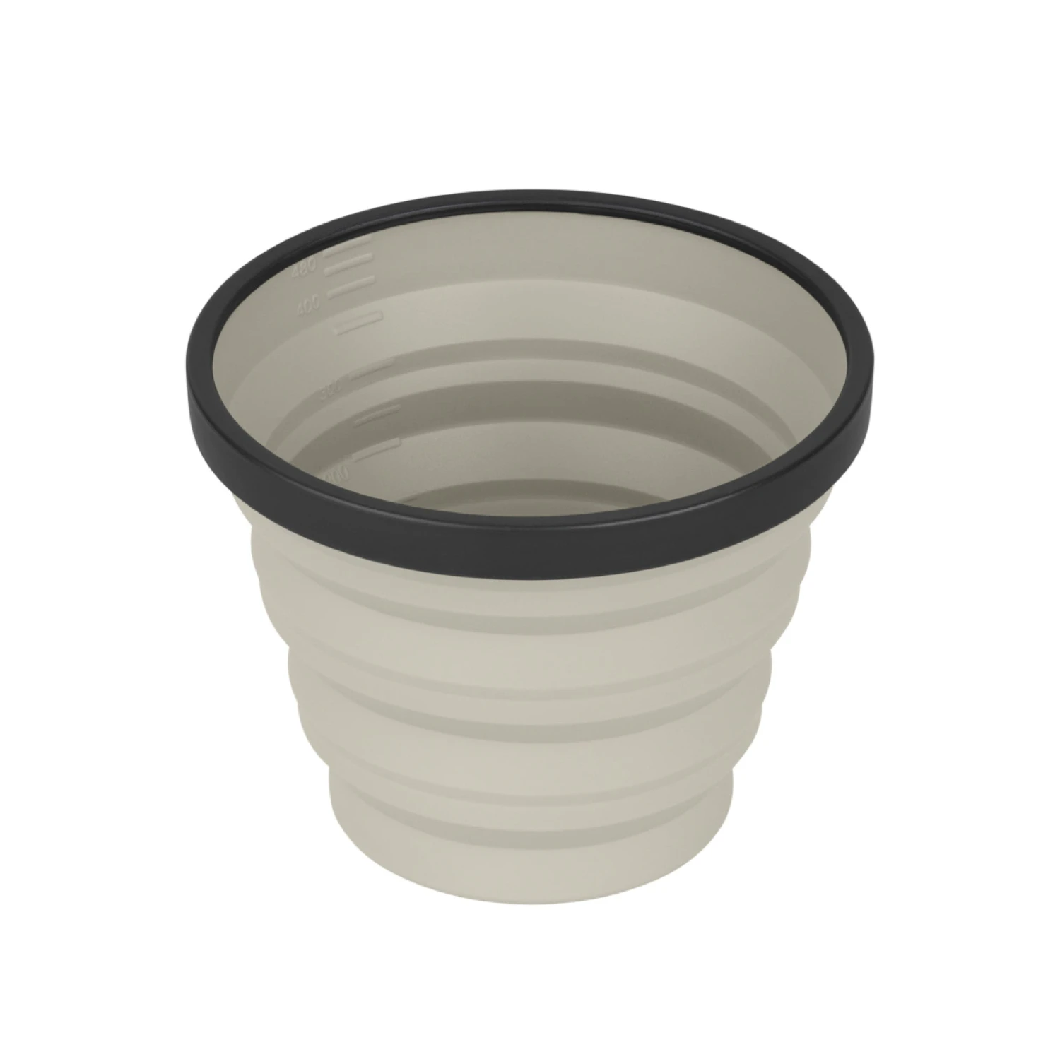The X-Mug is a collapsible camp mug with a 480 ml capacity that is also calibrated as a measuring cup. The food-grade, flexible silicone sides collapse making it a small compact disc sized dinnerware piece that nests neatly with other X-Series dinnerware and X-Pots, while the rigid ring creates a sturdy drinking vessel and prevents scalded fingertips.